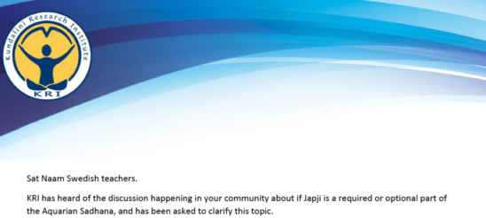Nu har Amrit Singh från KRI svarat på frågan och den korta versionen är: “Japji är en obligatorisk del av Aquarian Sadhana.”